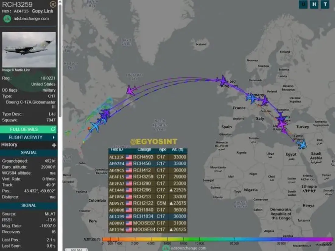Uçuş verileri, sevkiyatların Flightradar24 ve ADS-B Exchange platformları üzerinden açık kaynak olarak takip edildiğini ortaya koydu. Bu veriler, askeri hava trafiğinin yoğunluğunu ve belirli zaman aralıklarında artış gösterdiğini gözler önüne seriyor.