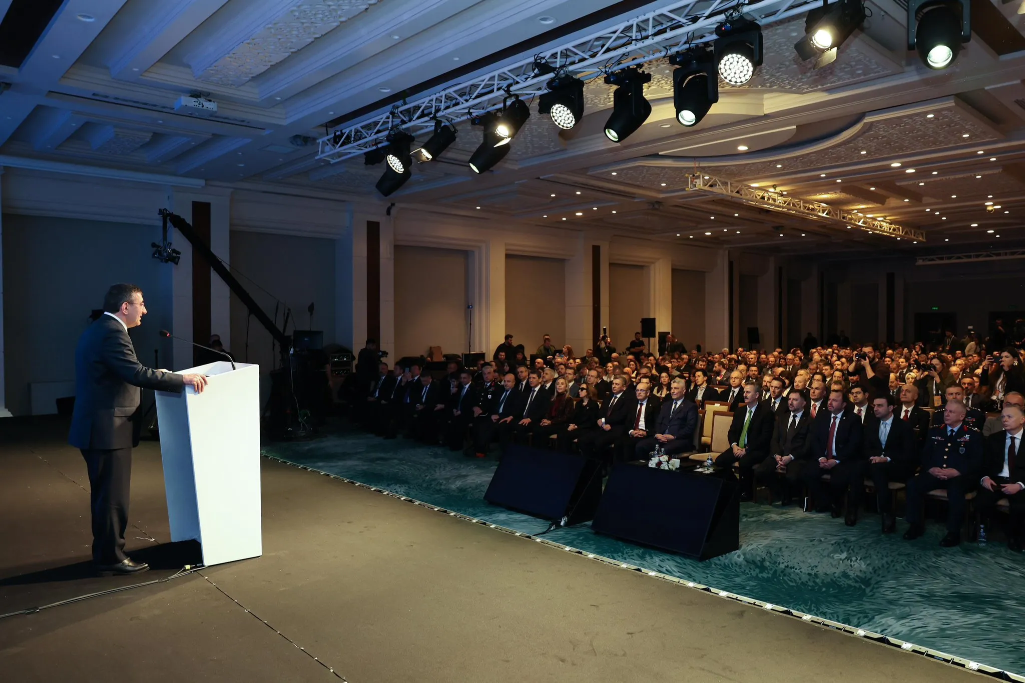 Konferansta konuşan Cumhurbaşkanı Yardımcısı Cevdet Yılmaz, konuşmasına küresel güvenlik endişelerine dikkat çekerek başladı. Venezuela’dan Gazze’ye kadar yaşanan gelişmelere işaret eden Yılmaz, jeopolitik dengelerin değiştiğini ve dünyada yapısal dönüşümlerin yaşandığını söyledi.