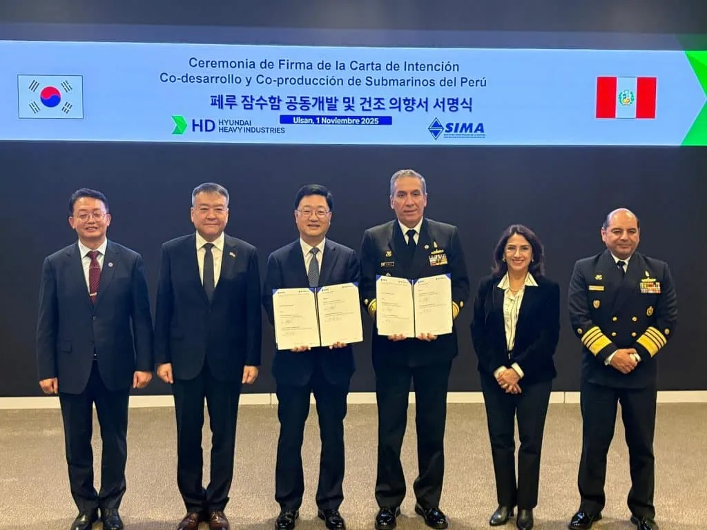 Ozan Akarsu7 Kasım 2025HD Hyundai Heavy ve SIMA Peru, Peru Donanması için yeni nesil denizaltı geliştirecekGüney Koreli gemi üreticisi HD Hyundai Heavy Industries (HD HHI) ile Peru devlet tersanesi SIMA Peru, Peru Donanması’nın gelecek nesil denizaltılarını ortaklaşa tasarlamak ve inşa etmek üzere bir niyet mektubu imzaladı.