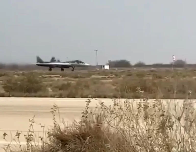 A Russian Su-57 fighter briefly stopped for refueling in the Iranian Airforce's 9th Tactical Fighter Base in Bandar Abbas, on its way back from the Aero India Airshow.