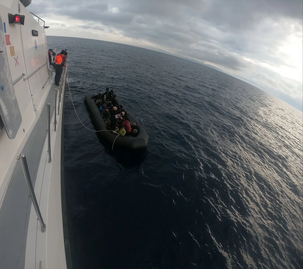 Yapılan açıklamaya göre, Sahil Güvenlik Komutanlığı'na bağlı ekipler, Yunanistan unsurlarınca Türk kara sularına itildiği belirlenen lastik bottaki 8'i çocuk 35 düzensiz göçmeni kurtardı. Kurtarılan göçmenler, güvenli bir şekilde karaya çıkarıldı.