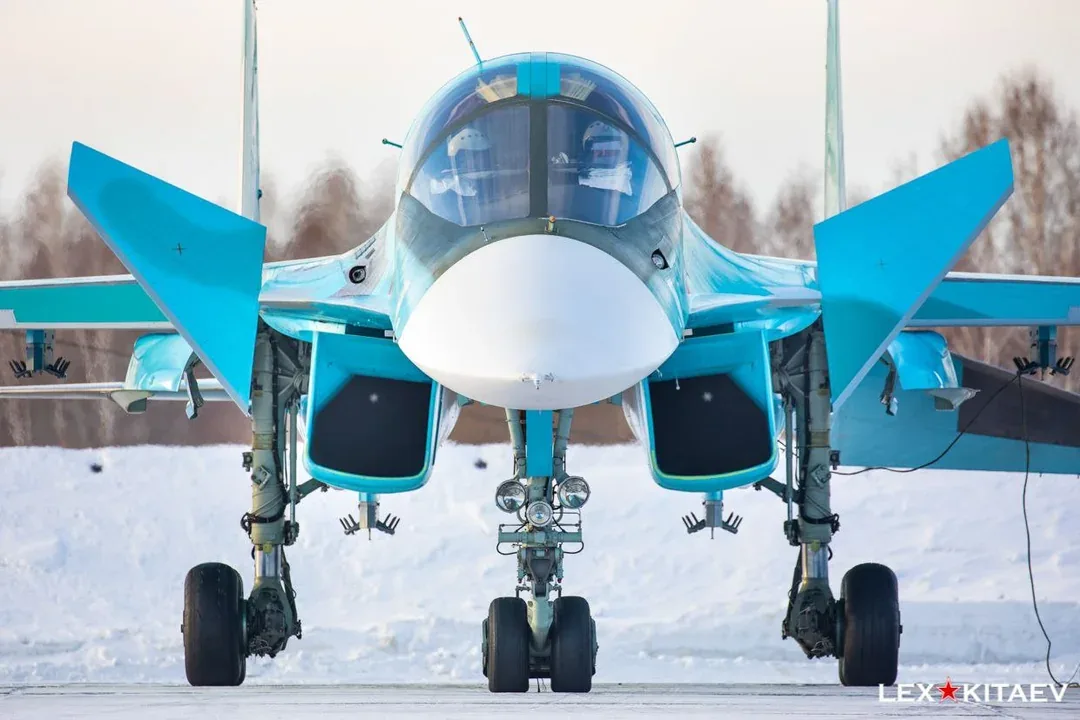 - Su-34M / Su-34 NVO: Seyrüsefer ve Dış Donanım Modernizasyonu “Sych” olarak bilinen, kapsamlı modernizasyon programına tabi tutulmuş ileri seviye versiyondur. 2020’de imzalanan devlet siparişiyle standart Su-34 üretiminin yerini almıştır. Bu gelişmiş varyantta radar, nişangâh sistemleri ve iletişim donanımları dahil olmak üzere neredeyse tüm aviyonikler yenilenmiş; ayrıca uçağın akıllı mühimmat yelpazesi ciddi ölçüde genişletilmiştir. Elektronik harp kabiliyetleri, gövdeye eklenen yeni sert nokta ve podlarla belirgin biçimde artırılmıştır. 2023 sonbaharında bu modelin uzun menzilli seyir füzeleriyle donatıldığı rapor edilmiştir. Ek olarak, silahlandırılmış bir keşif uyarlamasının Temmuz 2025’te aktif göreve girdiği bildirilmiştir.