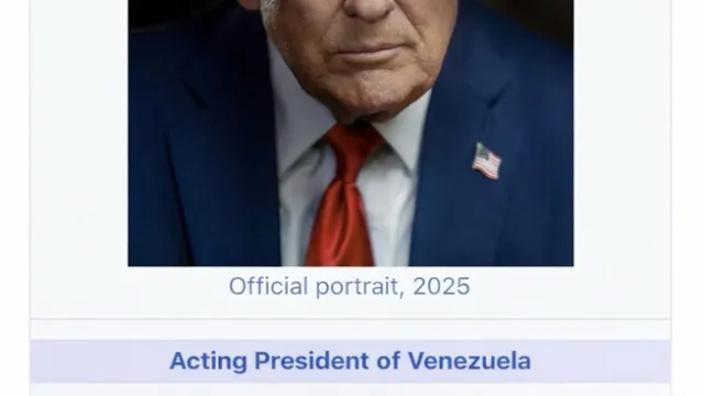 Trump, Truth Social hesabında paylaştığı ve Wiki-benzeri formatta tasarlanmış görselde, kendi fotoğrafının altında “Venezuela’nın Geçici Başkanı” ifadesini yer aldı. Görselde, Trump’ın resmi portresi “Venezuela’nın Geçici Başkanı, Görev Süresi: Ocak 2026” olarak gösterilirken ABD başkan yardımcısı olarak JD Vance adı yer aldı. Görselin Wikipedia’dan alınmış gibi gösterilmesi dikkat çekti ve birçok medya kuruluşu tarafından haberleştirildi.
