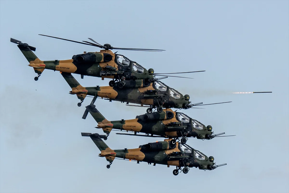 ATAK taarruz helikopterlerinden oluşan helikopter taburu faaliyet alanına geldi. ATAK helikopterleri, roket ve 20 milimetrelik top atışlarıyla hedeflerini başarıyla imha etti. AKINCI TİHA, protokol üyeleri ve öğrencileri selamlarken, motorlu yamaç paraşütü ekipleri de uçuş gösterisi gerçekleştirdi.