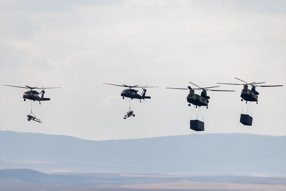 Tatbikatta hava unsurlarının da geniş katılımı dikkat çekti. Fırtına obüslerinin hedeflerini tam isabetle vurmasının ardından Skorsky tipi helikopterler topları, CH-47 Chinook tipi nakliye helikopterleri ise mühimmat dolu konteynerleri faaliyet alanına taşıdı.
